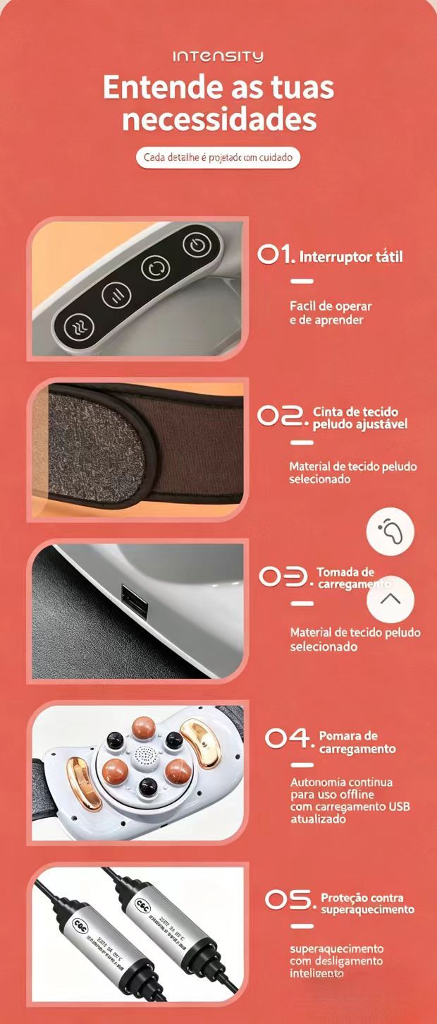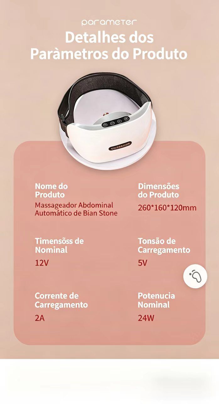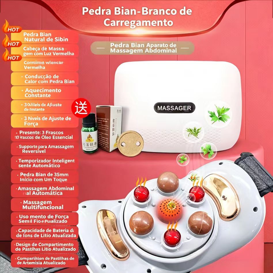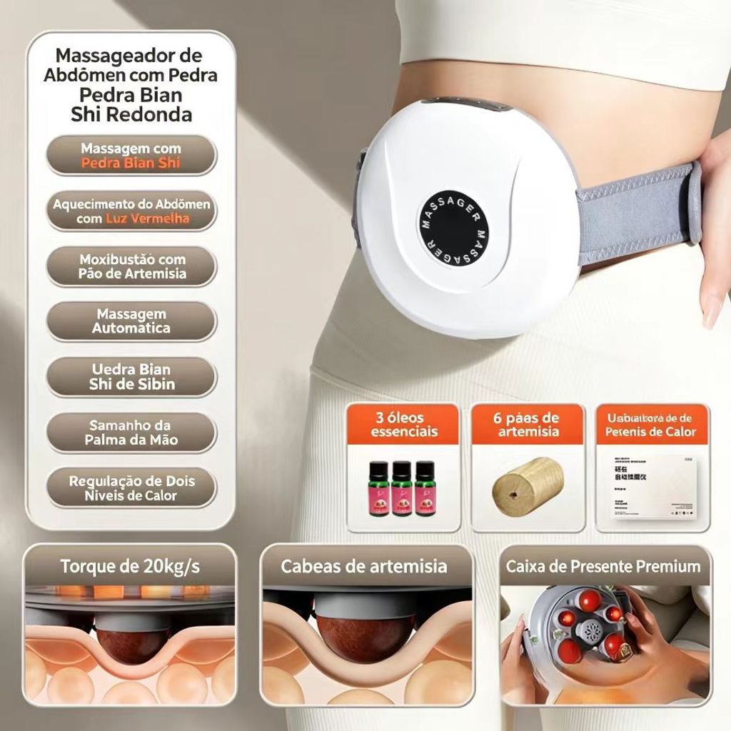 Aparelho de massagem abdominal com pedras de bian, aquecimento por moxa, automático, para cintura e abdómen