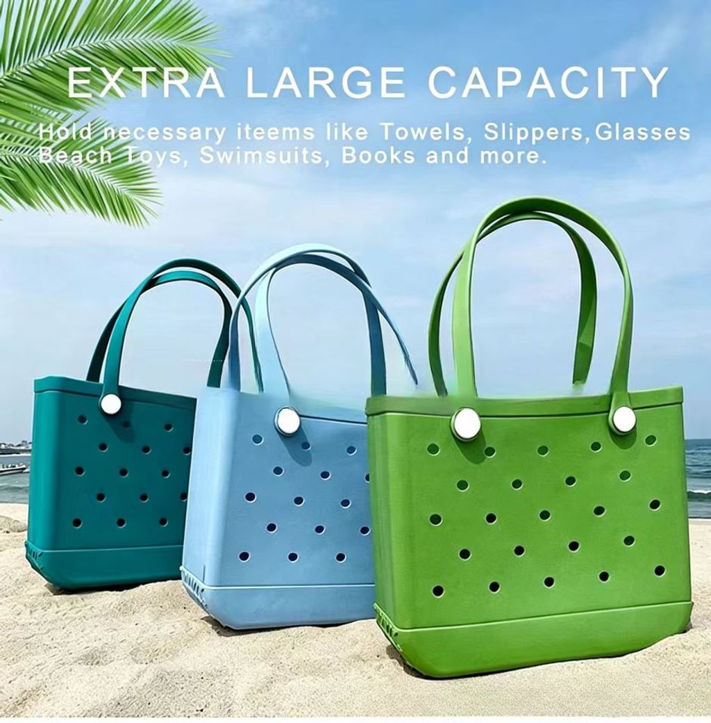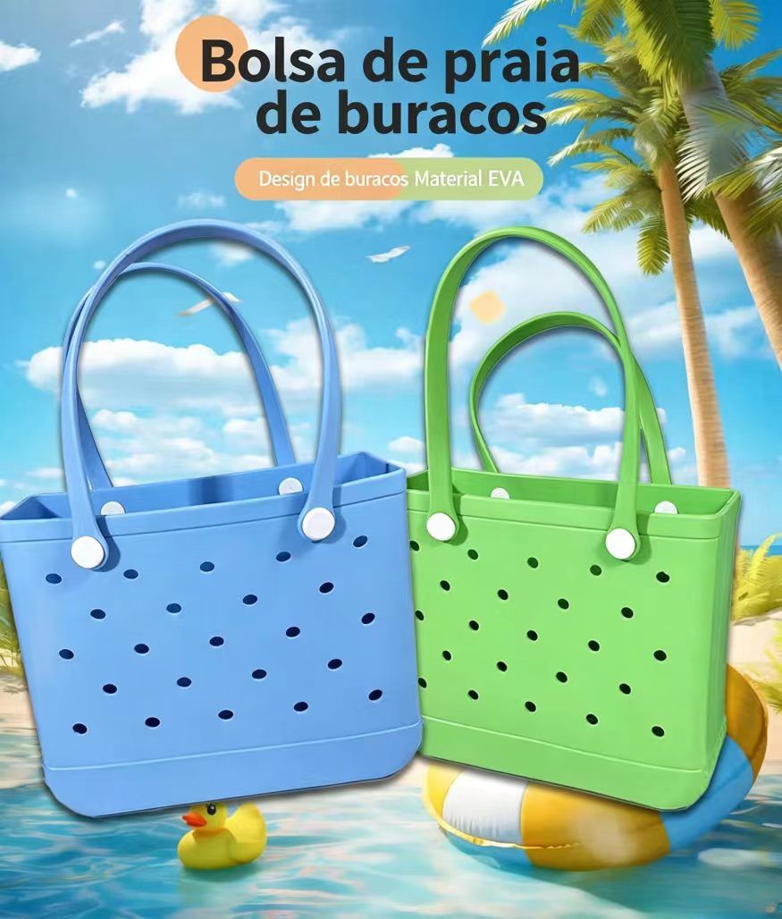 Bolsa de praia em eva estilo europeu e americano bolsa leve com furos moda diy grande capacidade bolsa de mão feminina bolsa de ombro exclusiva para praia