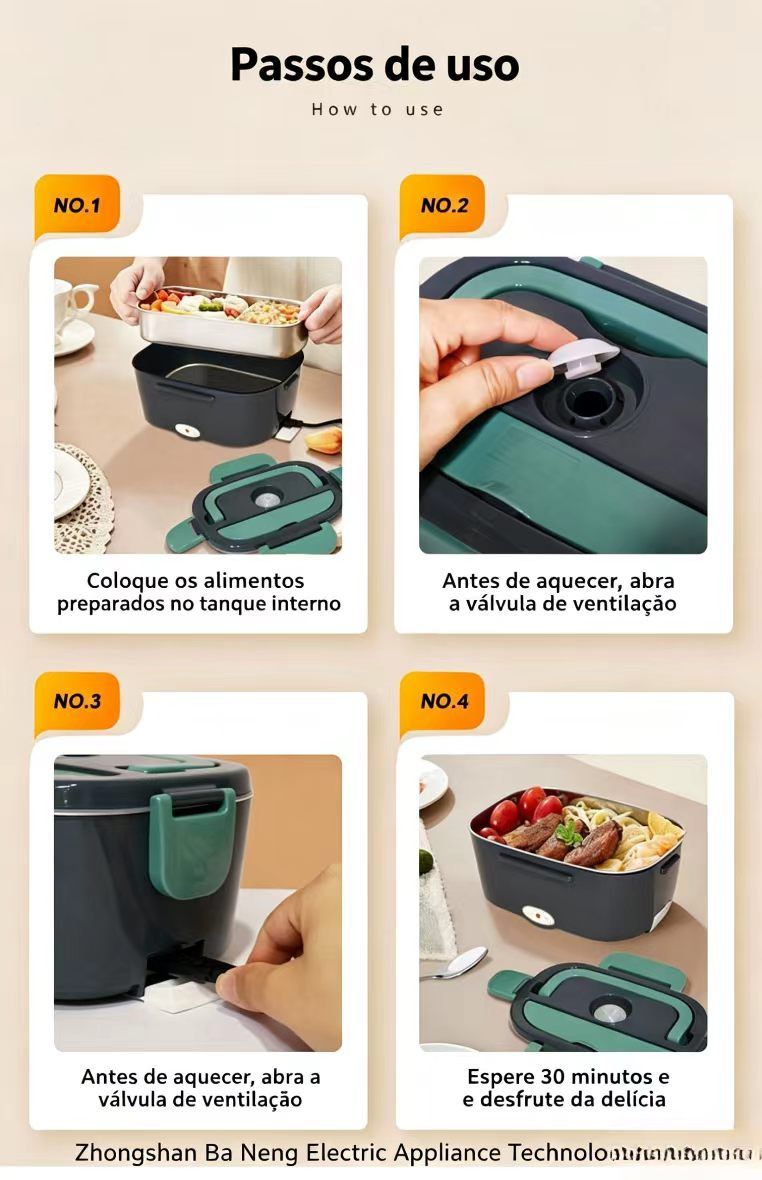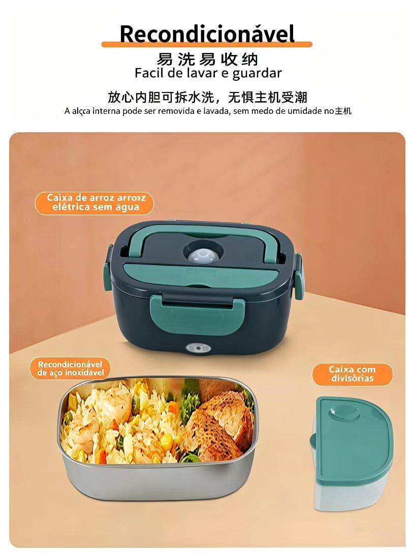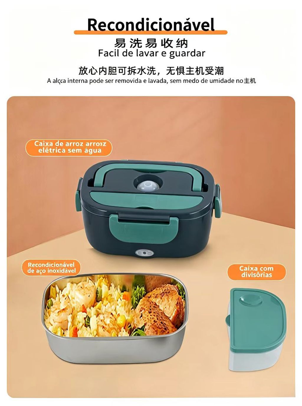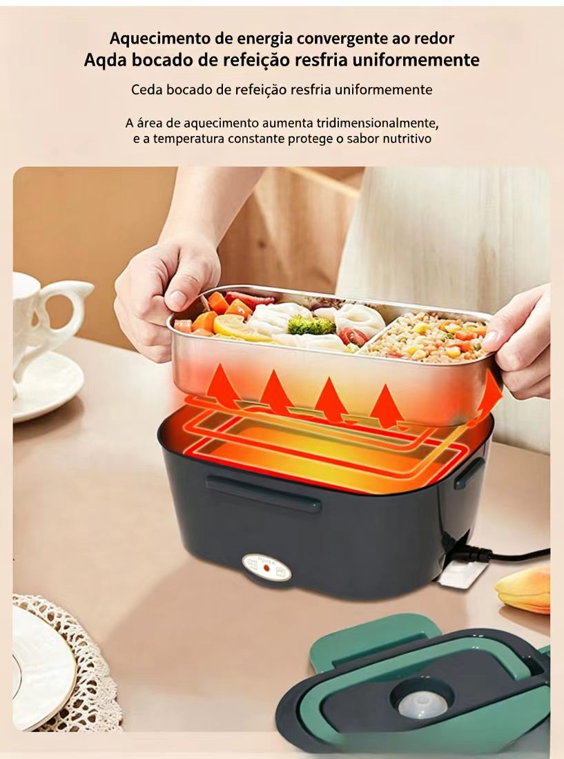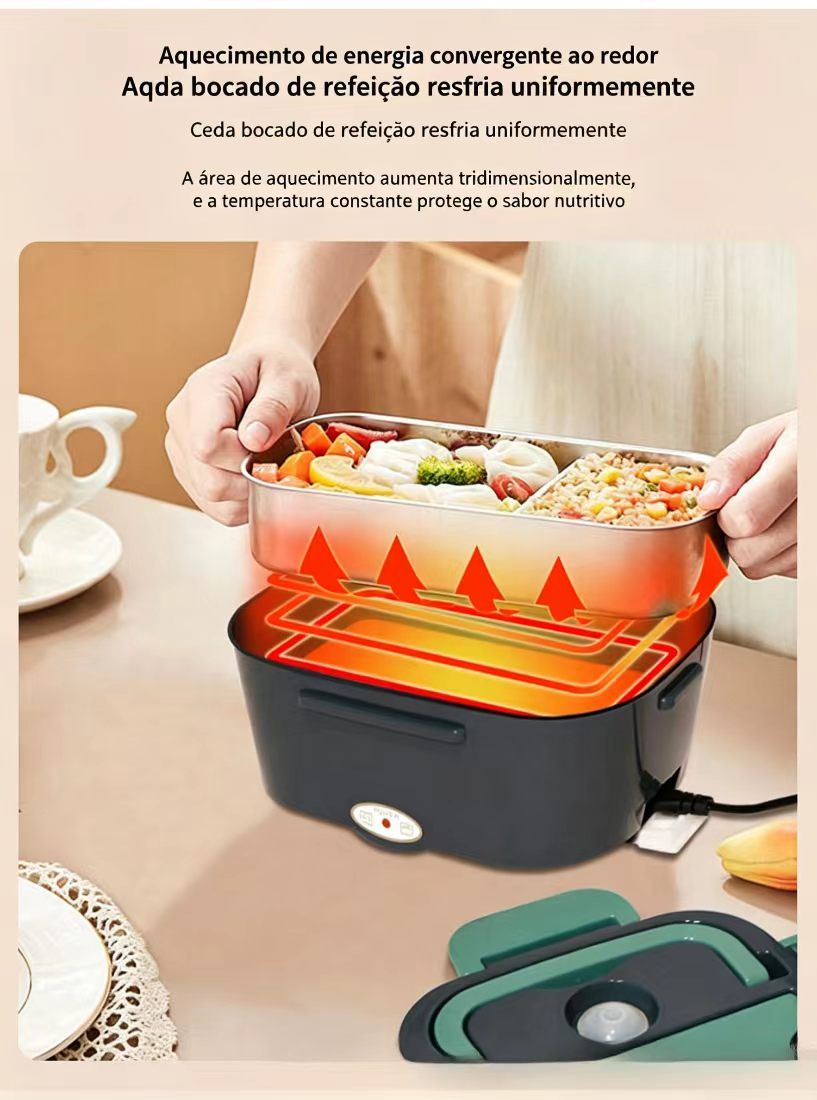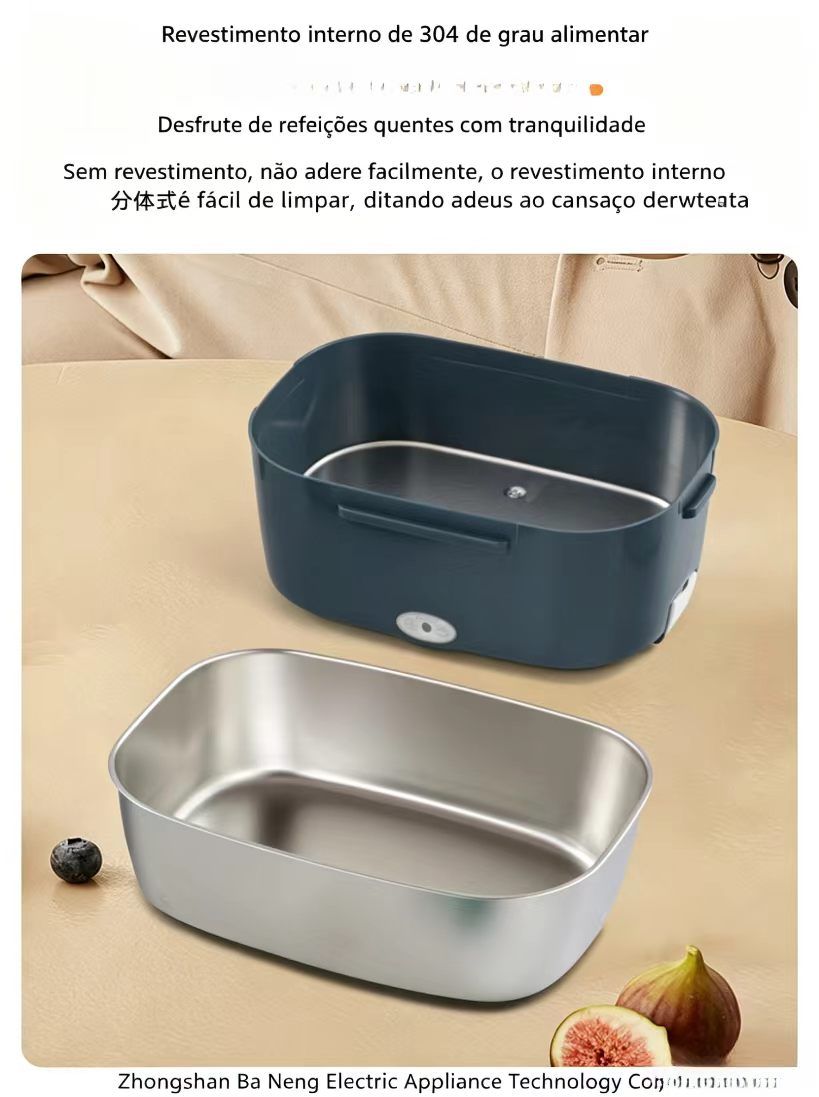 Caixa de refeicao eletrica em aco inoxidavel sem necessidade de agua mantem o calor e aquece para trabalhadores de escritorio utilizavel em veiculos e com tomada eletrica