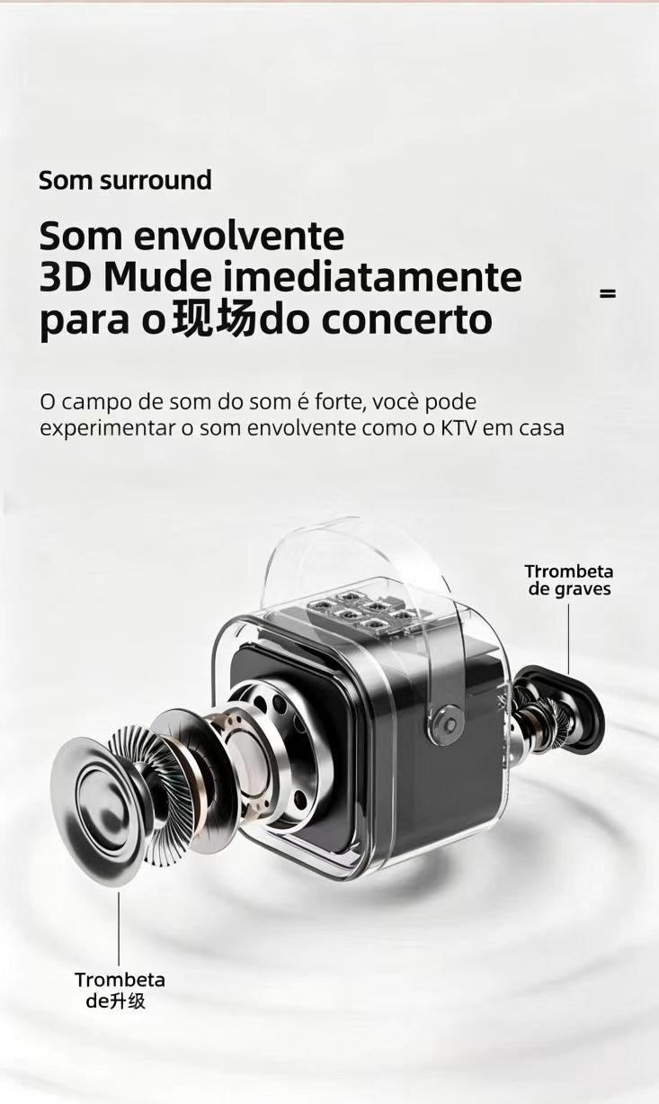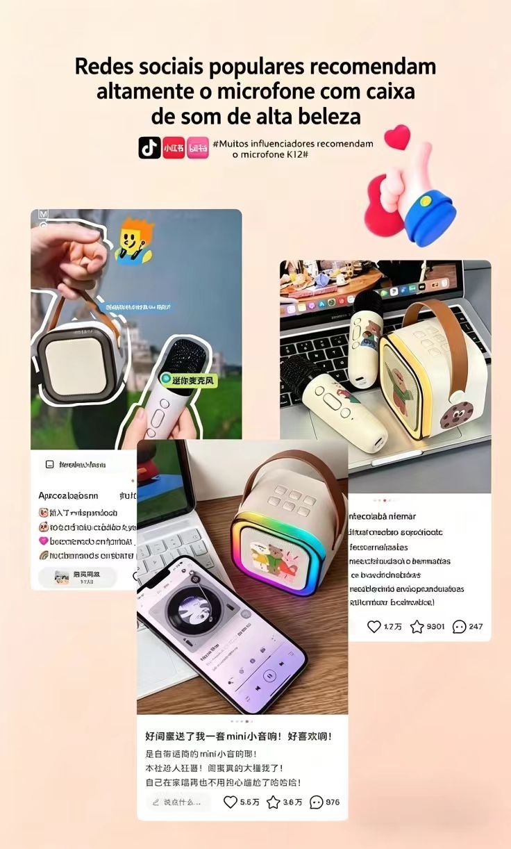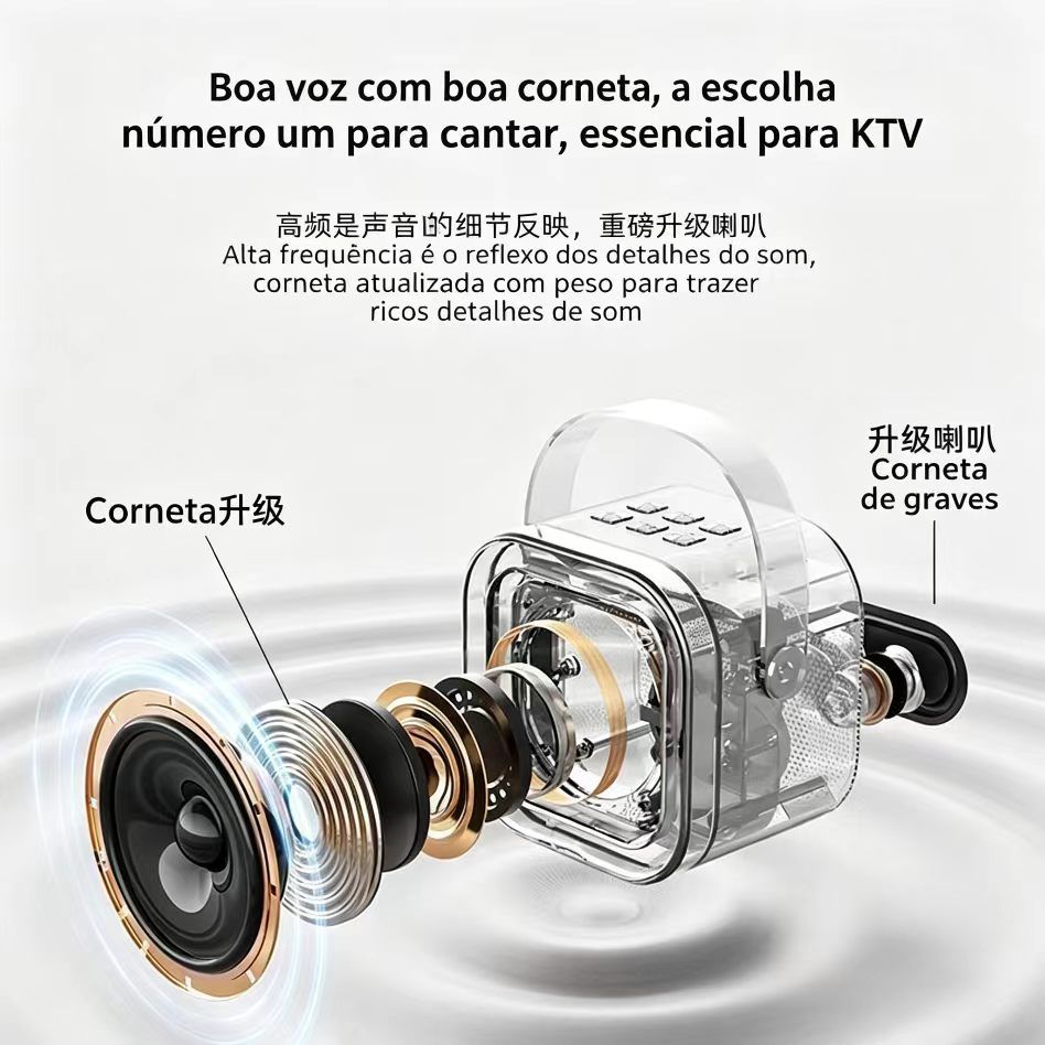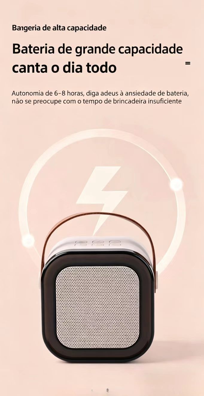 Caixa de Som Bluetooth K12 3401, Mini e Portátil, All-in-One de Microfone para Karaokê sem Fio, Sistema de Karaokê para Casa com Seleção de Músicas**