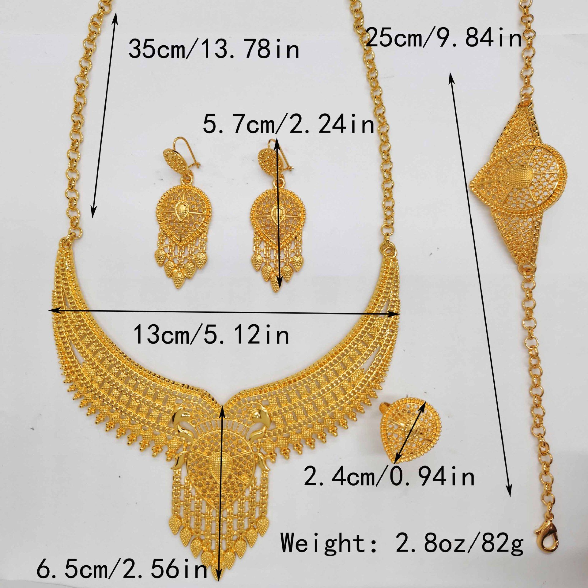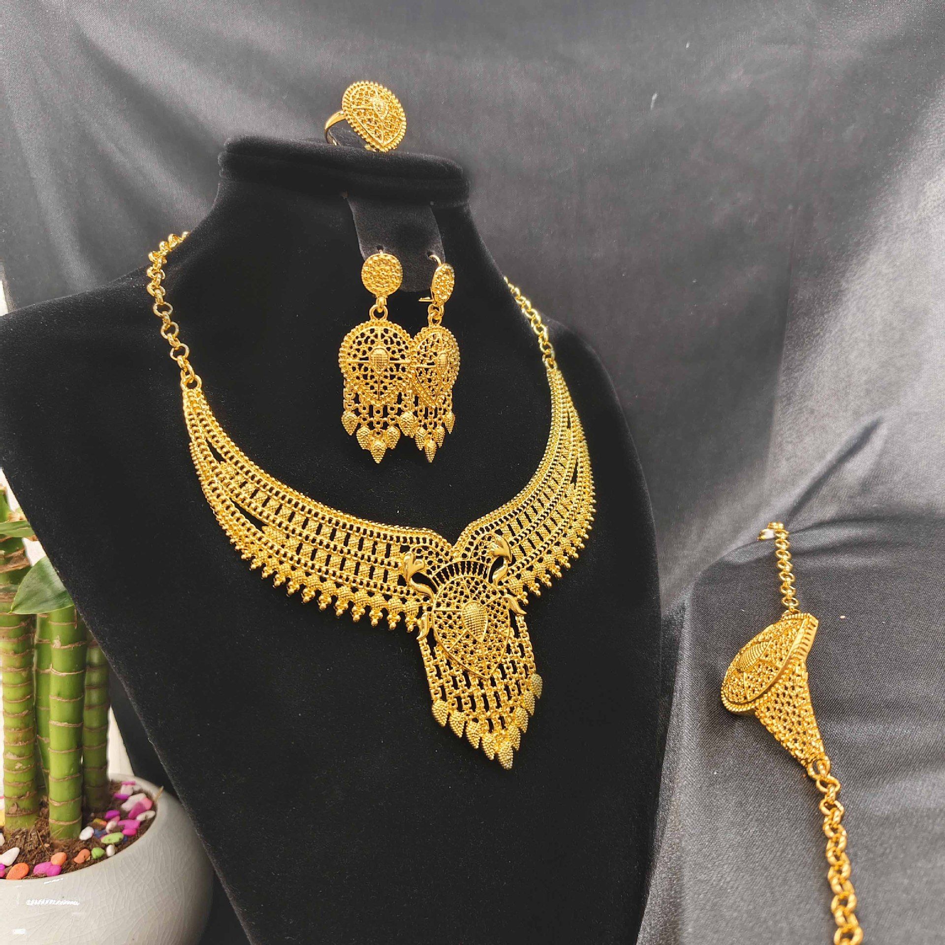 Conjunto de joias femininas com pulseira brinco colar e anel banhado a ouro 24K estilo Dubai da marca Jiamila conjunto de quatro pecas para Nigeria