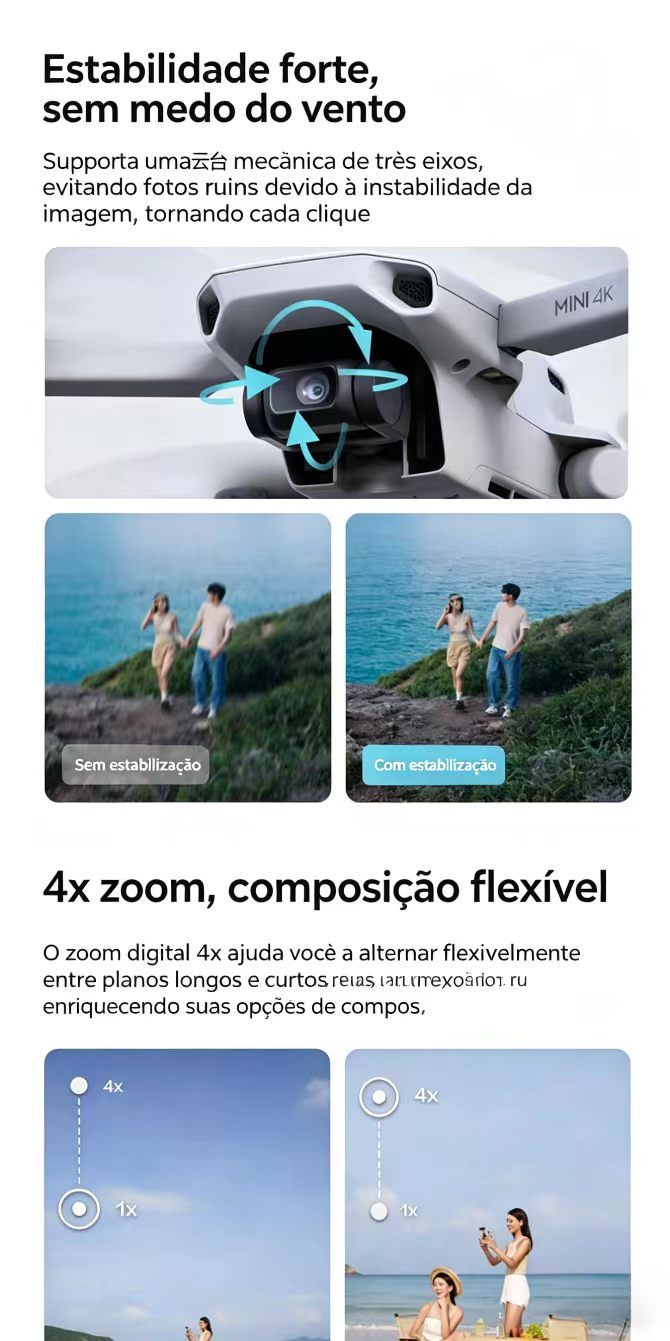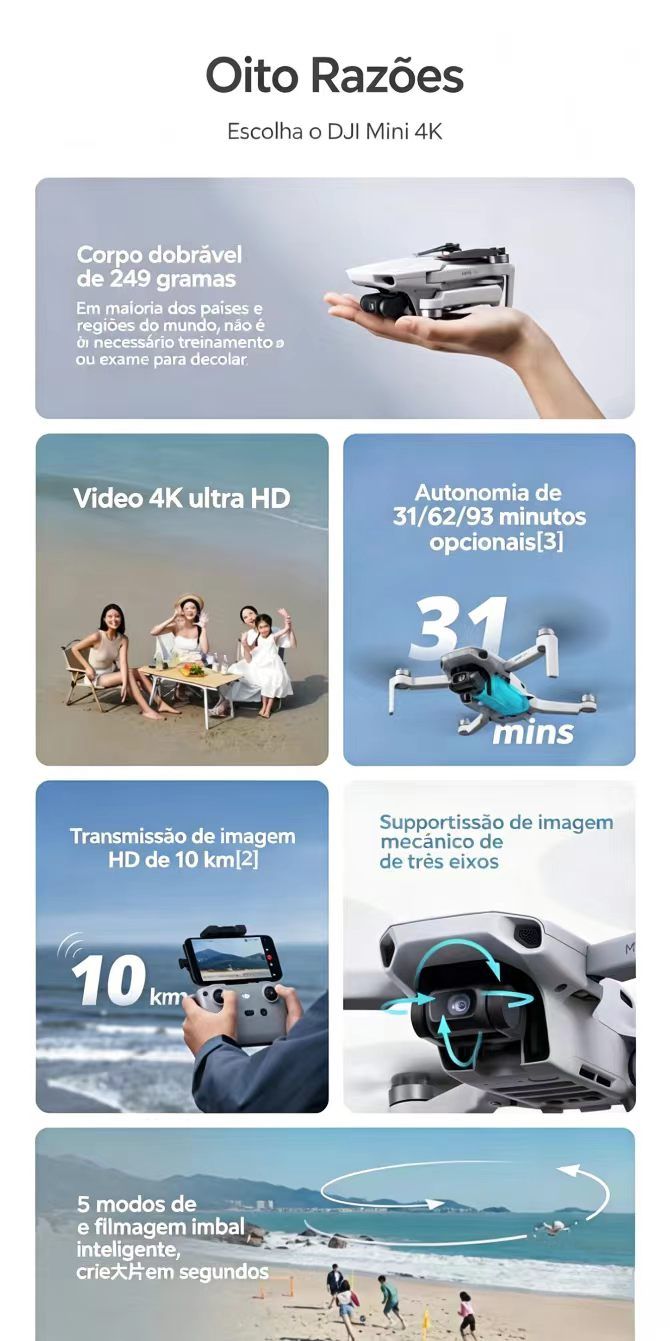 Drone mini de aerofotografia ultra HD DJI Mini 4K estabilizacao mecanica de tres eixos transmissao de imagem digital camera voadora de nivel iniciante com captura inteligente