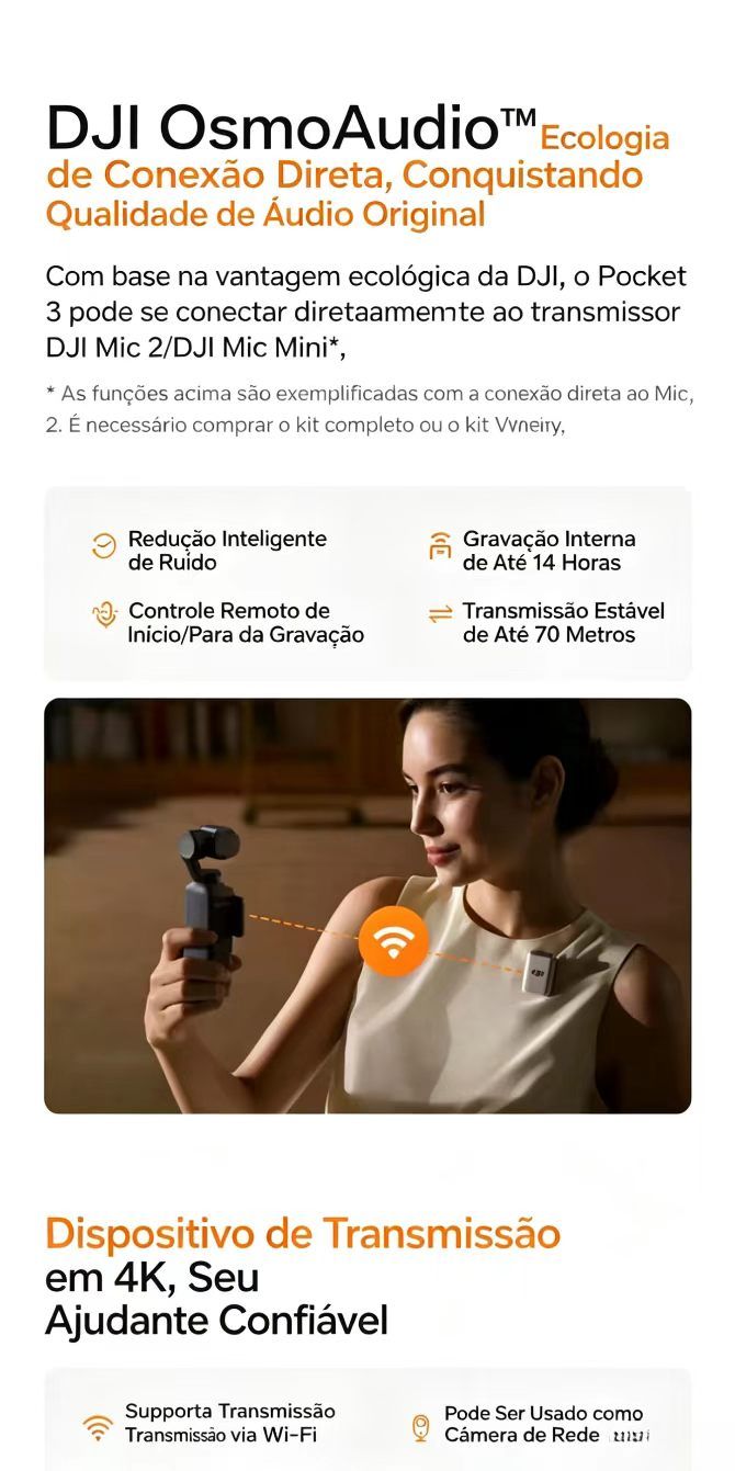 Em Stock DJI Osmo Pocket 3 Câmara de Desporto Câmara Portátil de Viagem em 4K Ultra HD