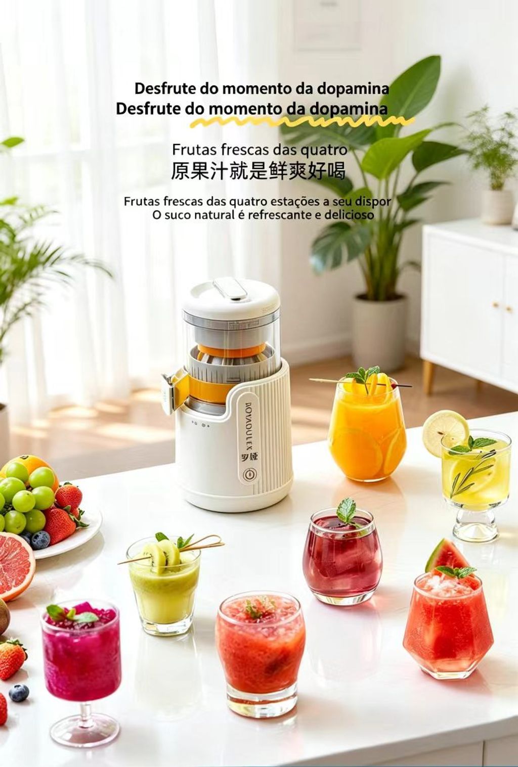 Espremedor de frutas lento Ya Chengzhi, multifunções, máquina de sumos doméstica com separação automática de polpa e sumo, extrator de sumo completo