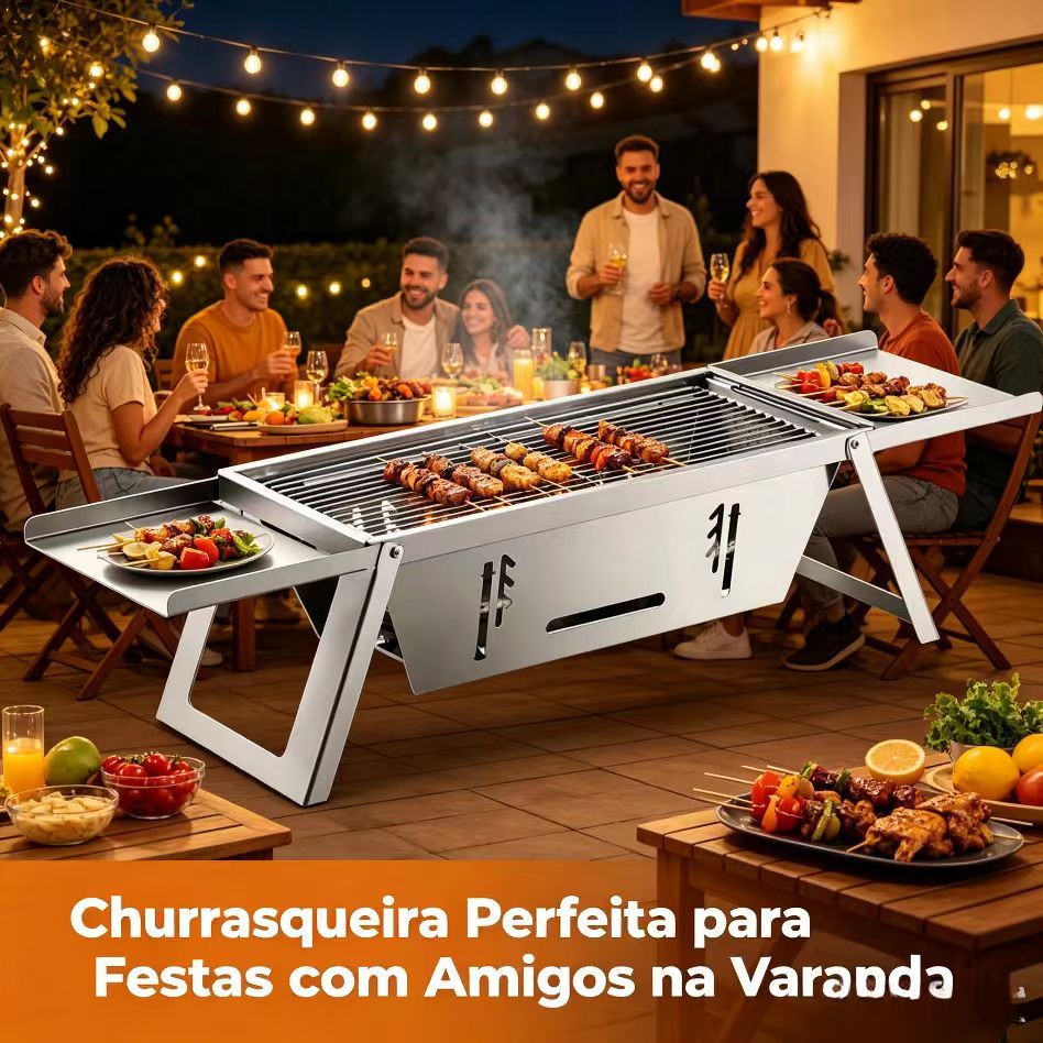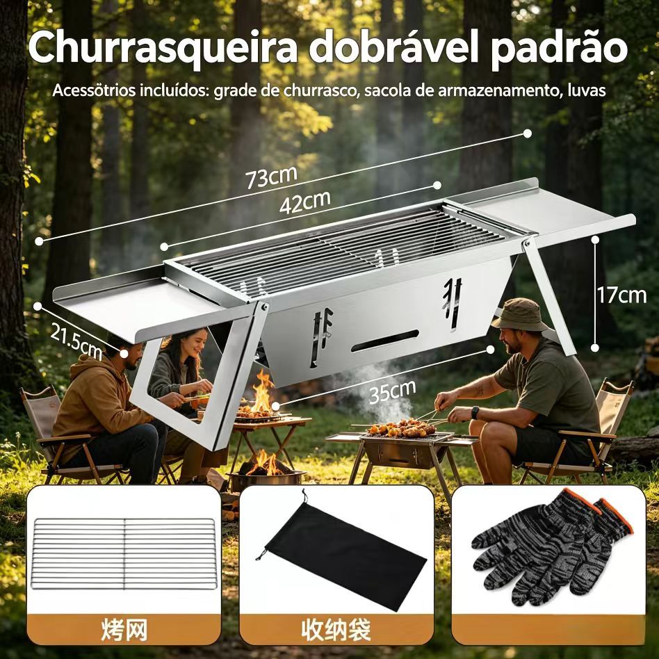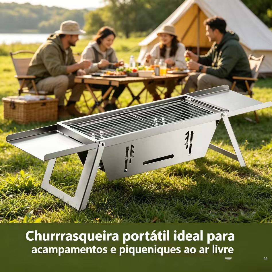 Fogao de churrasco dobravel em aco inoxidavel grelha de churrasco domestica fogao de carvao ao ar livre e ferramentas de churrasco