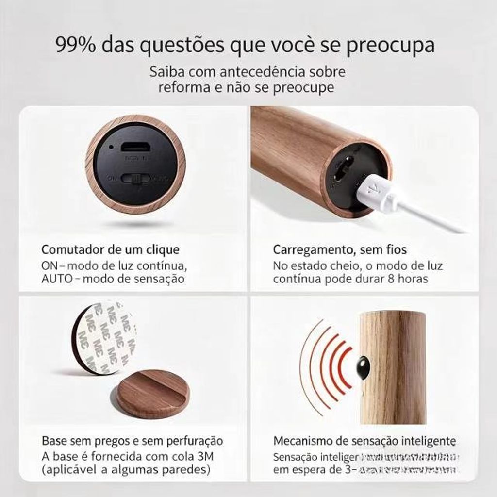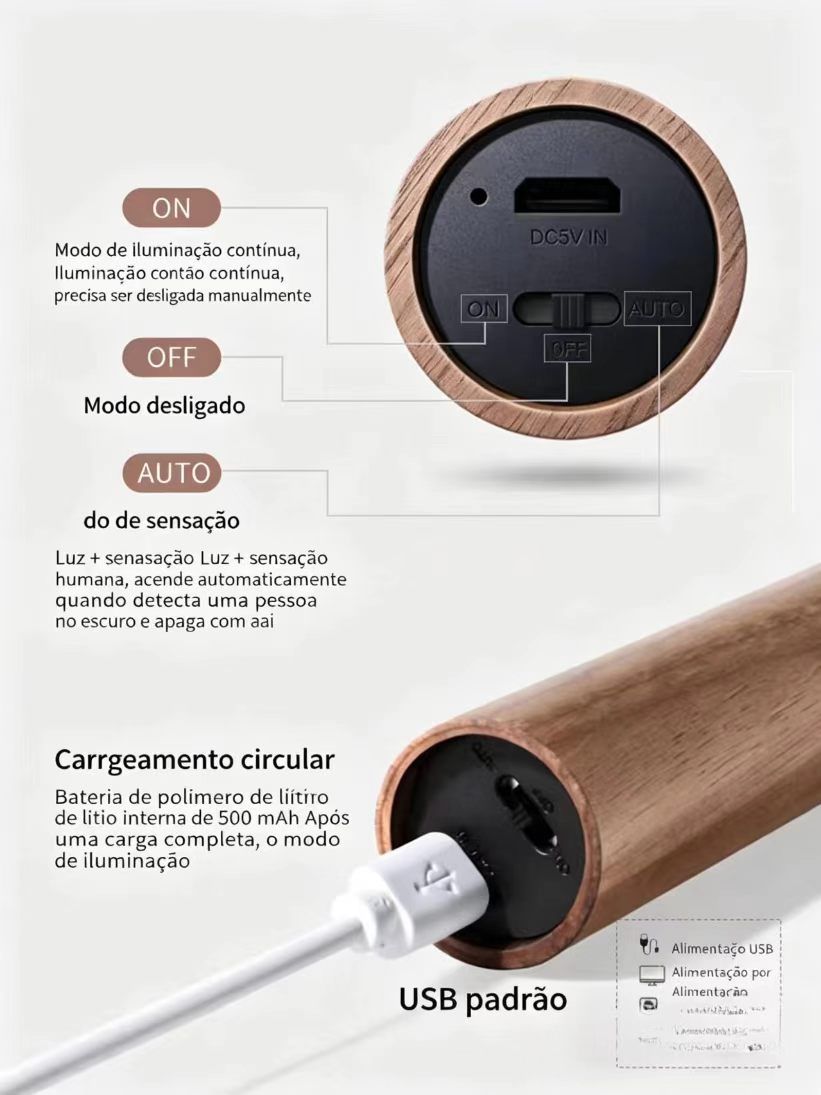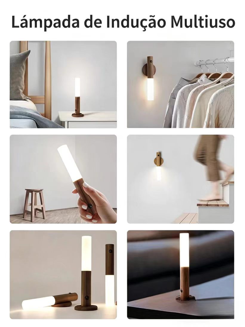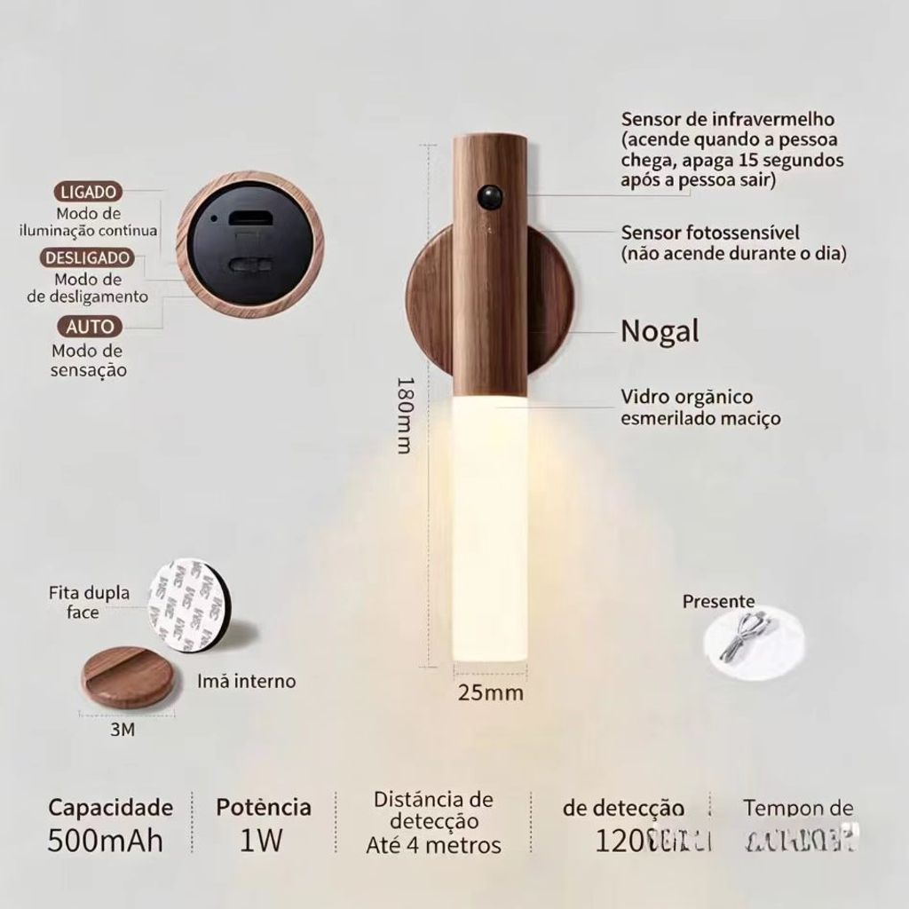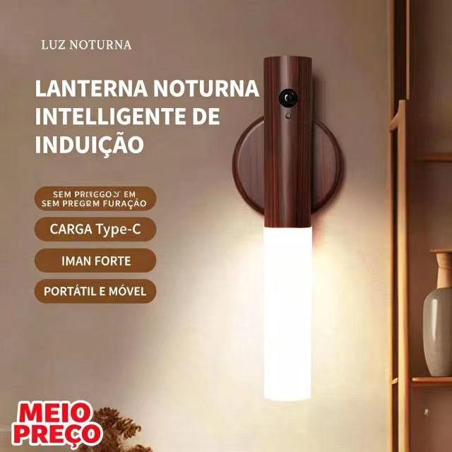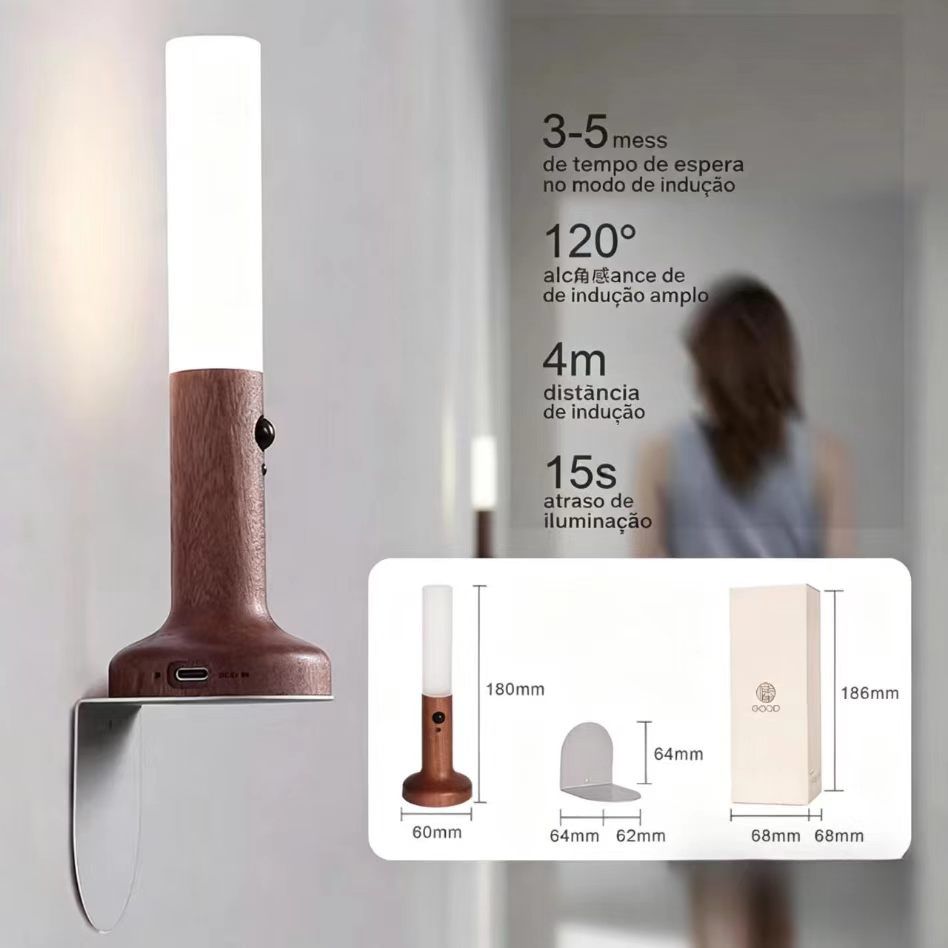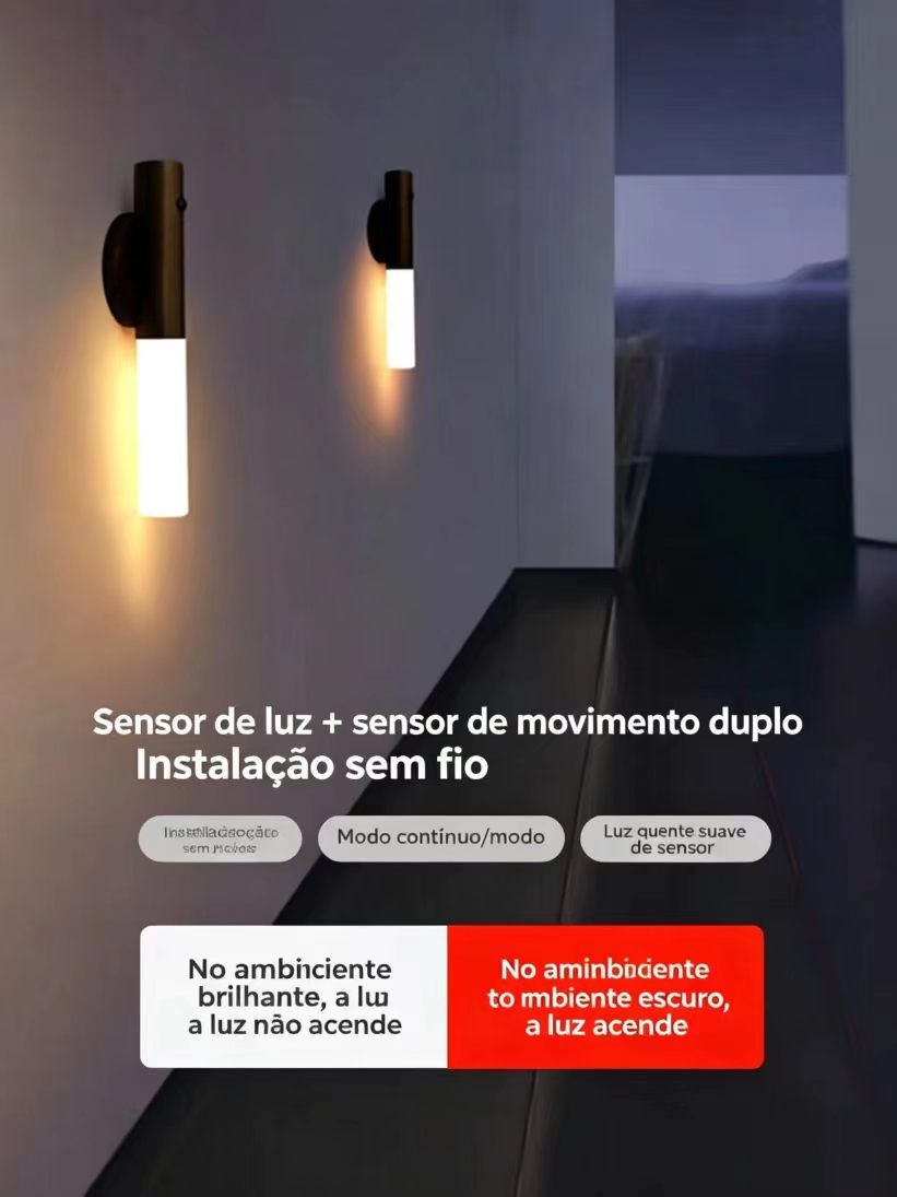 Luz noturna LED recarregavel com sensor humano lampada de parede magnetica para quarto corredor e passagem com protecao ocular automatica para uso noturno