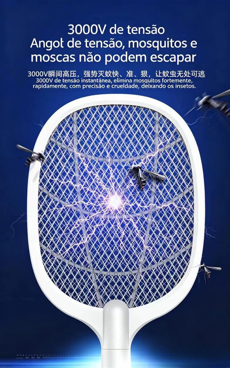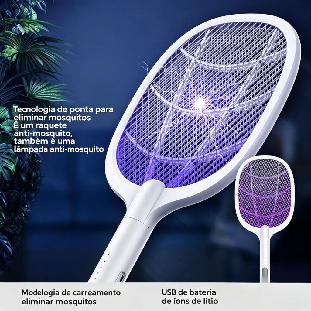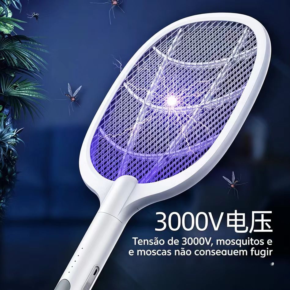 Raquete eletrica anti mosquitos e luz eliminadora de mosquitos raquete eletrica com controlo de luz inteligente repelente de insetos por raios ultravioleta versatil para mesa e uso manual