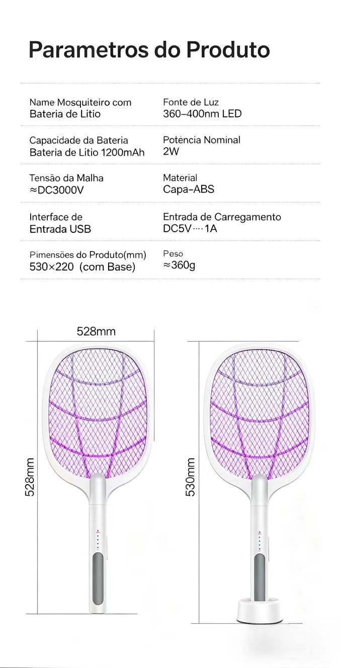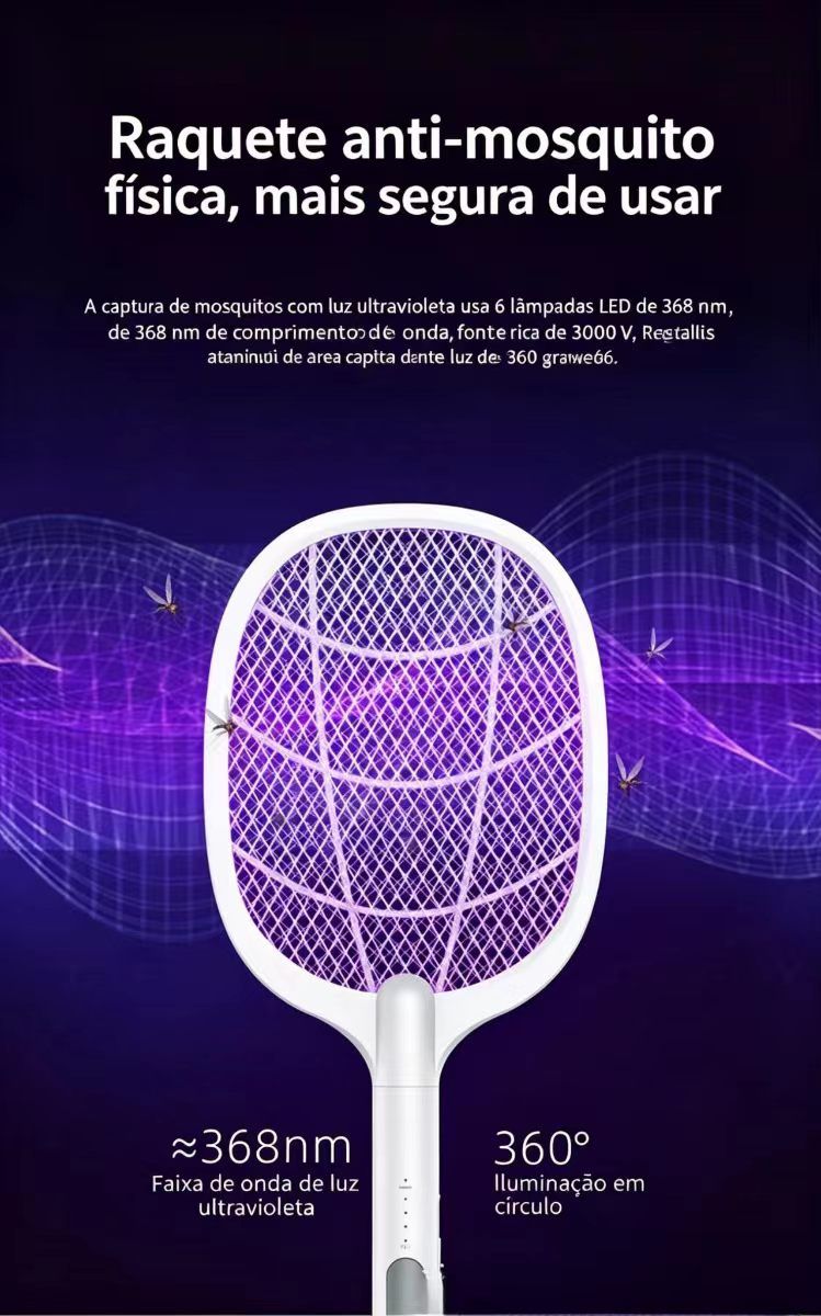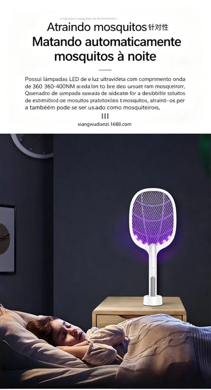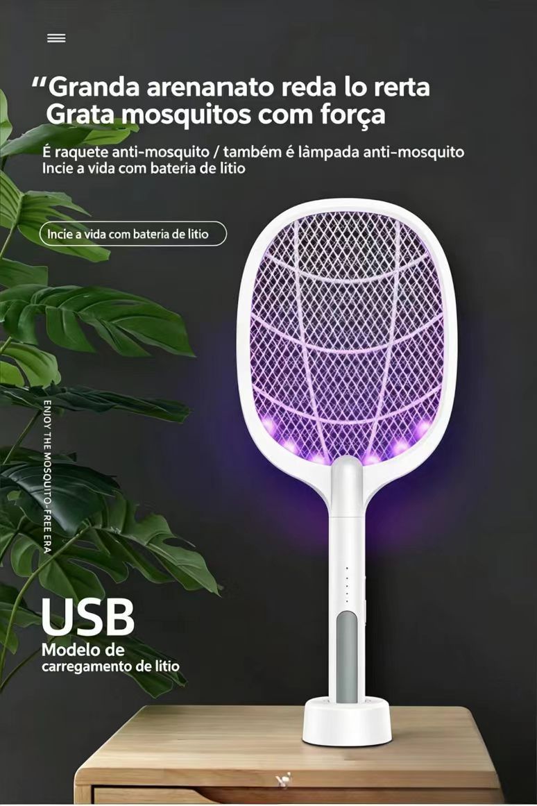 Raquete eletrica anti mosquitos e luz eliminadora de mosquitos raquete eletrica com controlo de luz inteligente repelente de insetos por raios ultravioleta versatil para mesa e uso manual