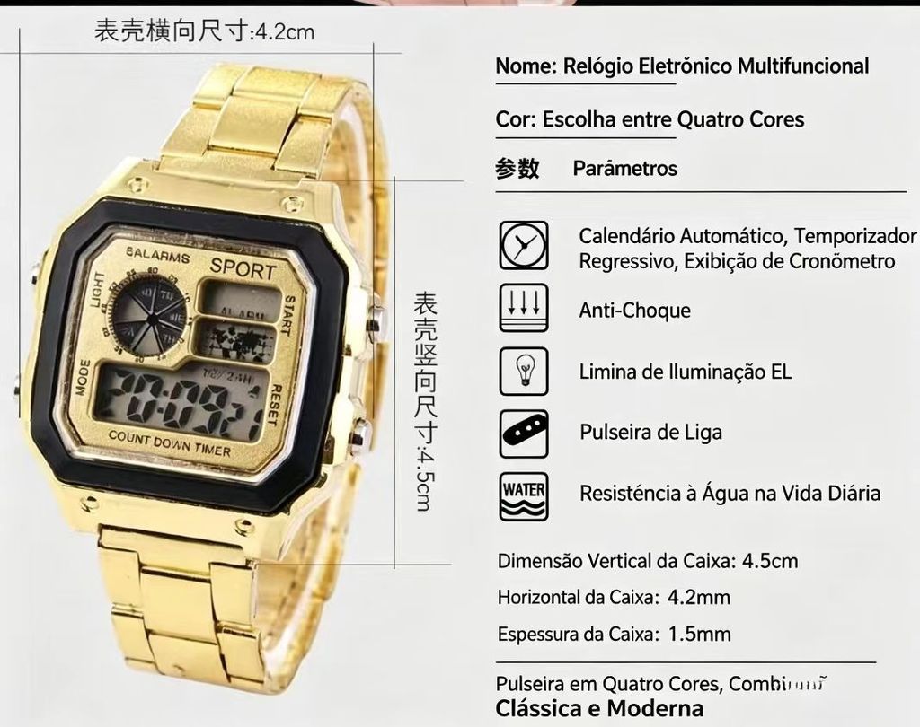 Relogio eletronico quadrado com pulseira de aco led multifuncional impermeavel esportivo luminoso com alarme para estudantes homens e mulheres