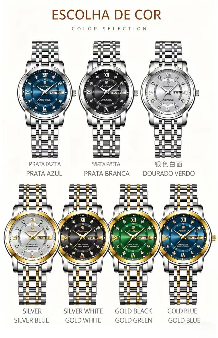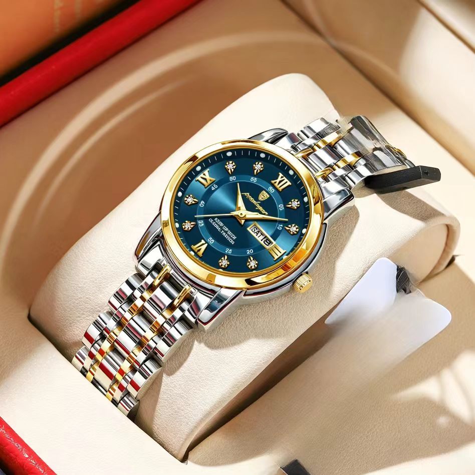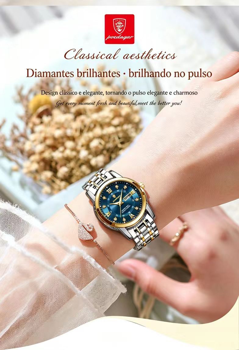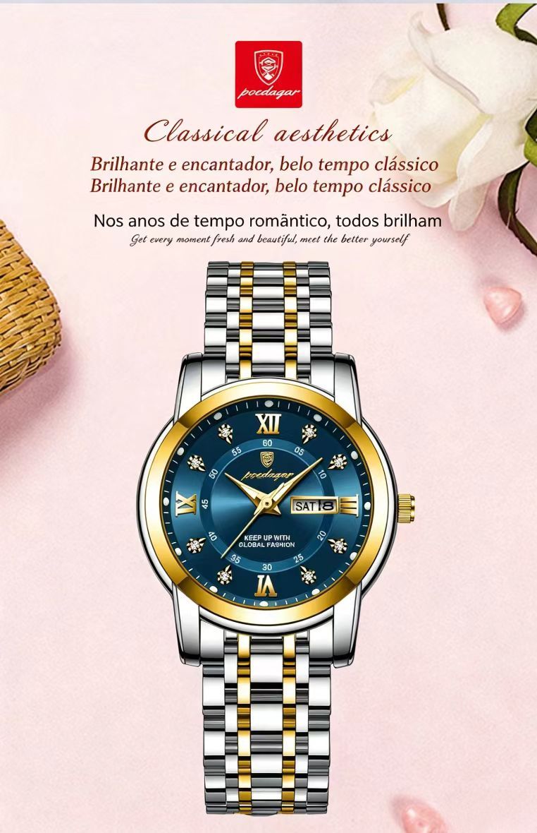 Relogio feminino de marca suica novo modelo impermeavel luminoso com duplo calendario item popular para transmissao ao vivo e comercio externo