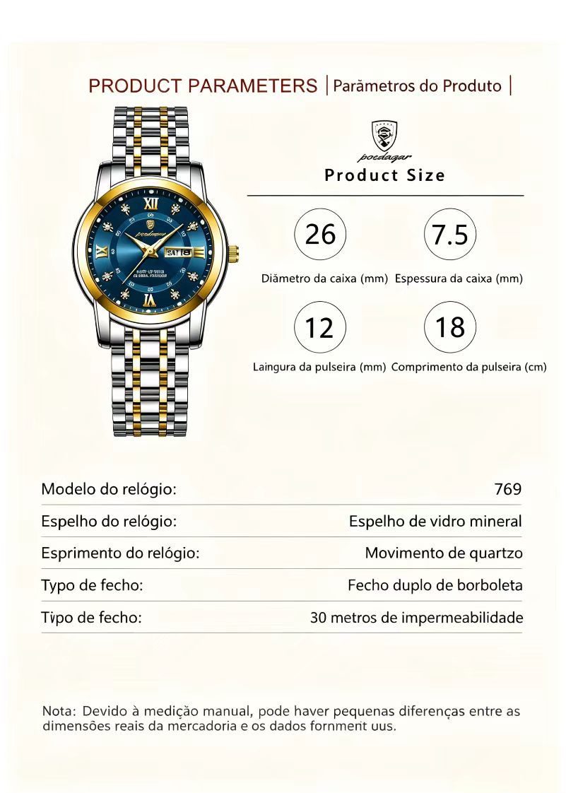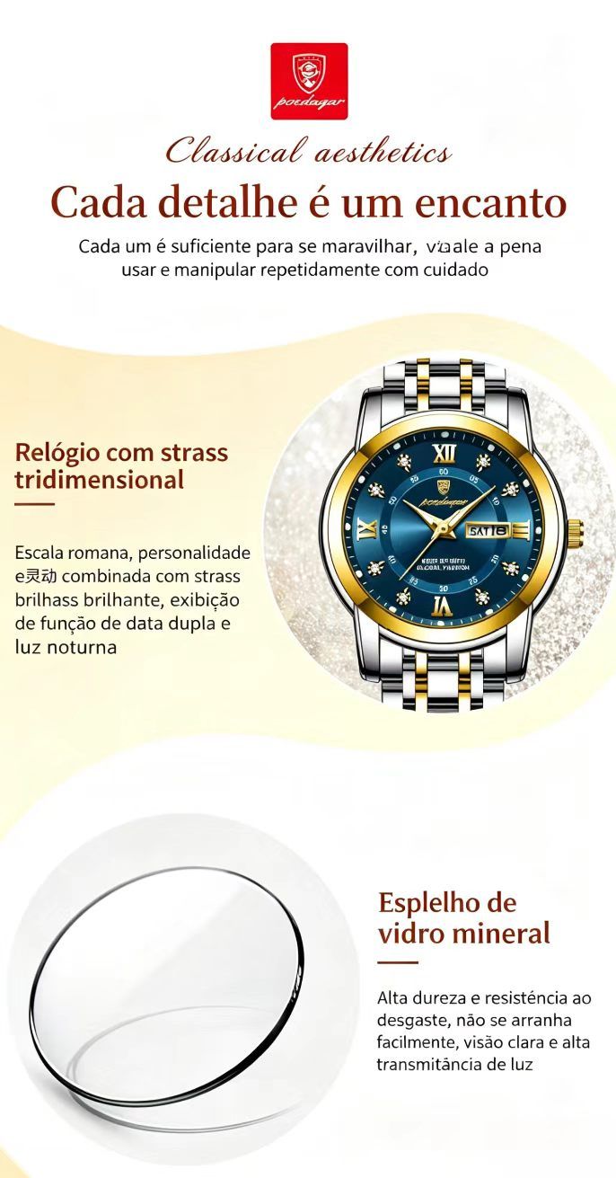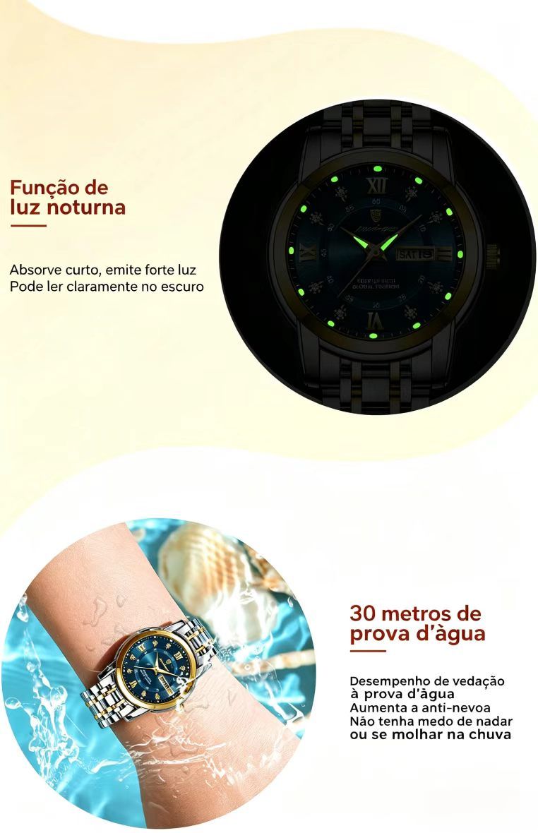 Relogio feminino de marca suica novo modelo impermeavel luminoso com duplo calendario item popular para transmissao ao vivo e comercio externo